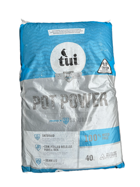 Tui Pot Power is the premier potting mix for today’s container gardening connoisseurs. This lightweight mix is formulated using superb growing media technology, coupled with superior ingredients. The added benefit of seaweed stimulates root development and improves overall plant health.
